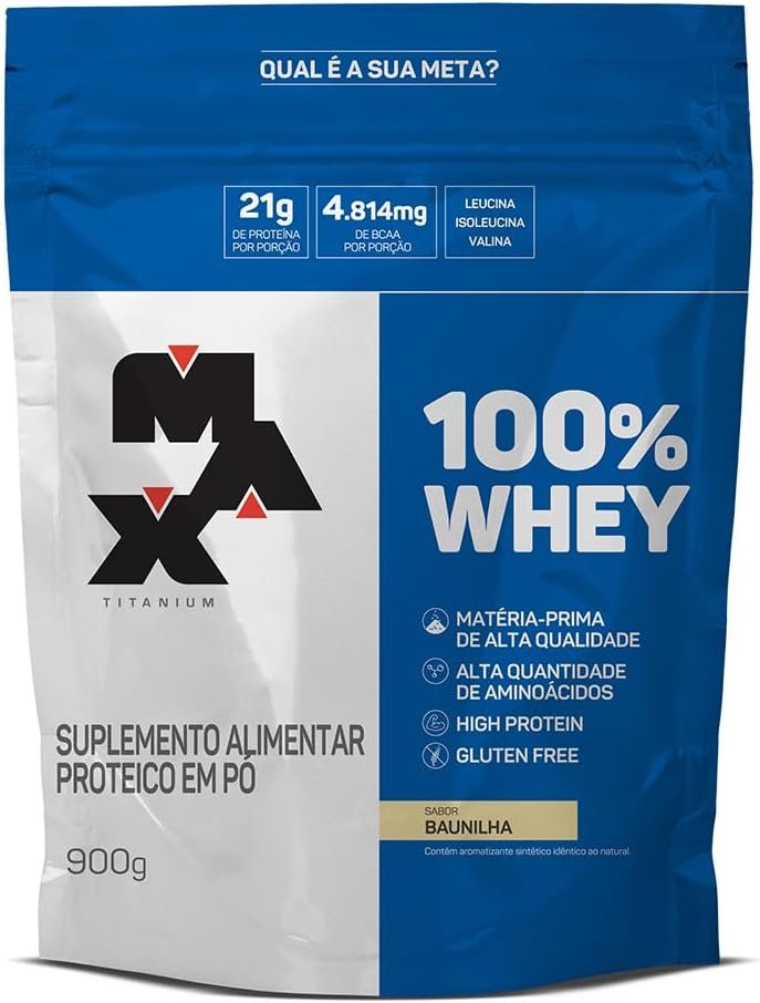 Em até 1x de R$59,38 sem jurosEm até 12x de R$5,61 com juros À vistaR$53,44no Pix100% Whey Refil (900G) – Baunilha – Max Titanium
