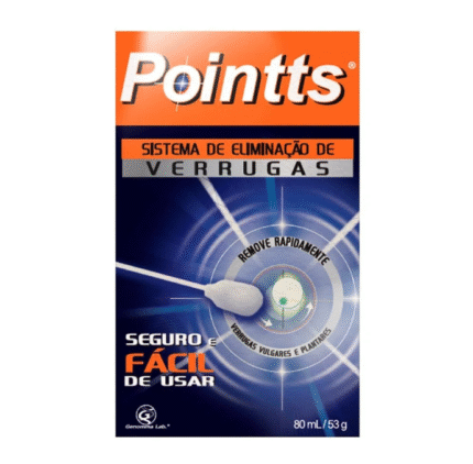 Pointts Antiverrugas 80ml O Pointts Antiverrugas 80ml é um spray prático desenvolvido para auxiliar na remoção de verrugas de maneira