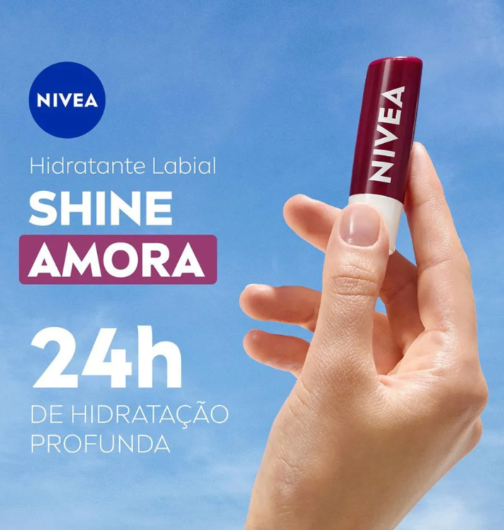O Hidratante Labial Nivea Amora Shine 4,8g é um produto para cuidado diário dos lábios, desenvolvido para ajudar a manter a hidratação e proporcionar brilho suave com leve tonalidade inspirada na amora.