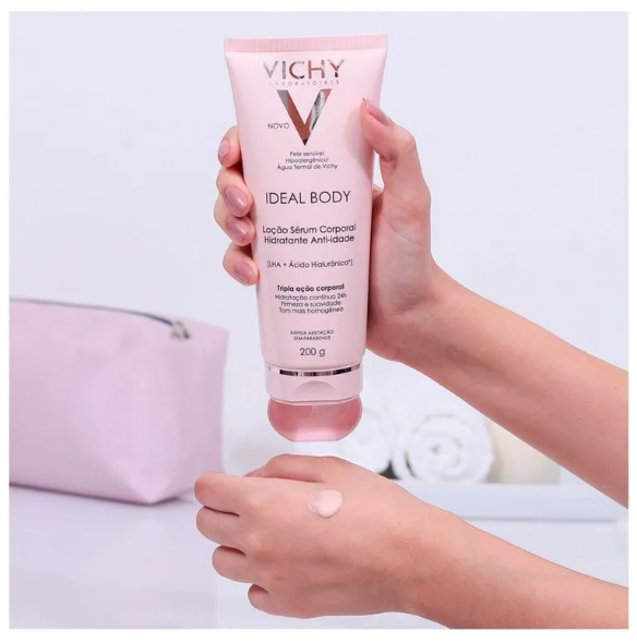 A Loção Hidratante Vichy Ideal Body 200ml foi desenvolvida para proporcionar hidratação prolongada e deixar a pele mais macia, uniforme e luminosa ao longo do dia. Sua textura suave espalha com facilidade e é rapidamente absorvida, garantindo conforto imediato sem deixar sensação pegajosa.