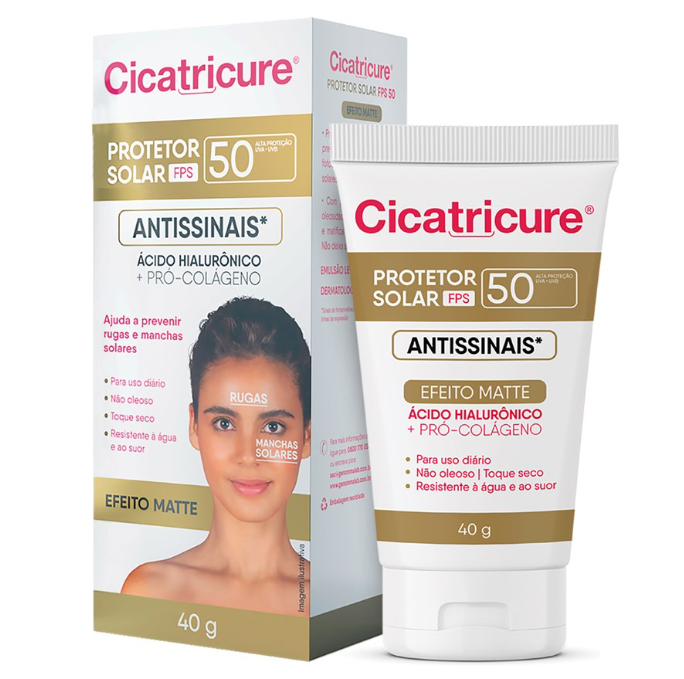 Protetor Solar Facial Cicatricure FPS50 Efeito Matte Antissinais 40g