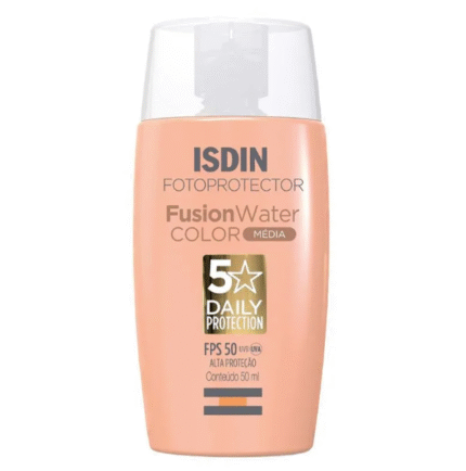 Protetor Solar ISDIN Fusion Water FPS 50 cor clara 50ml O Protetor Solar ISDIN Fusion Water FPS 50 Cor Clara 50ml foi desenvolvido para oferecer alta proteção no dia a dia com uma textura ultraleve, confortável e de rápida absorção. Sua tonalidade clara uniformiza suavemente a pele, deixando um acabamento natural, sem pesar ou marcar. É ideal para quem busca praticidade com proteção eficiente, toque seco e um resultado discreto que substitui facilmente a maquiagem leve. Benefícios Proteção elevada contra raios UVA e UVB. Textura leve à base de água, que espalha facilmente e seca rápido. Toque seco, ajudando a controlar o brilho ao longo do dia. Cor clara que uniformiza o tom da pele e disfarça pequenas imperfeições. Pode ser aplicado na pele seca ou úmida. Não obstrui os poros e é adequado para uso diário, inclusive em peles sensíveis. Modo de usar Aplique no rosto e pescoço secos ou úmidos, espalhando de maneira uniforme. Reaplique sempre que necessário, especialmente após suor intenso, mergulho ou ao se secar com toalha. Use todos os dias para manter a proteção contínua e o acabamento natural.