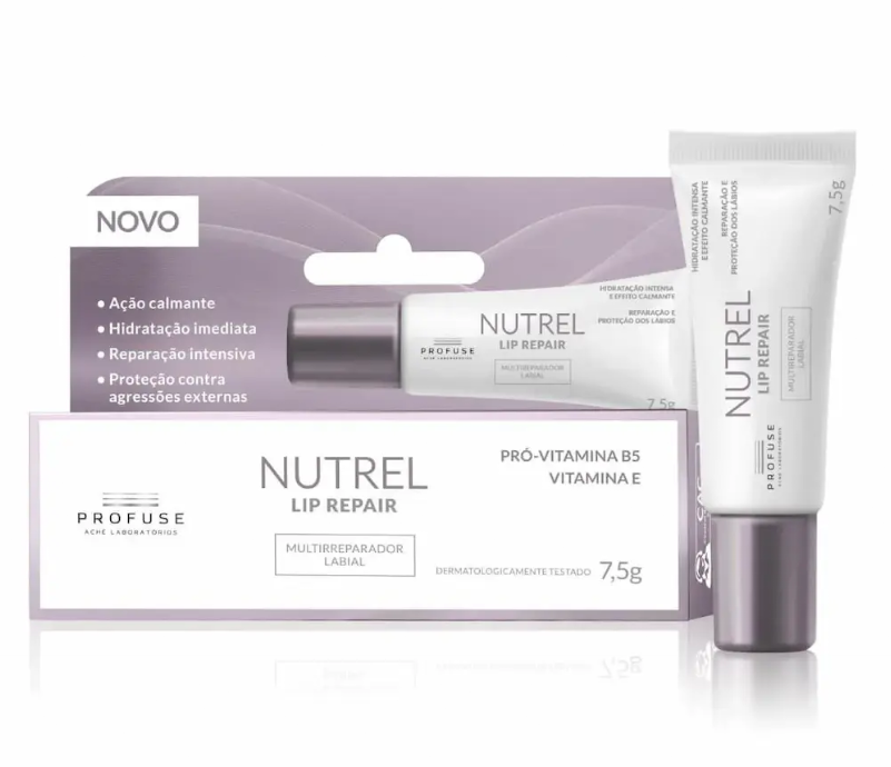 O Reparador Labial Profuse Nutrel Lip Repair 7,5 g foi desenvolvido para proteger e restaurar a hidratação dos lábios secos, ressecados ou sensibilizados por clima frio, vento ou baixa umidade. Sua textura suave desliza com facilidade, formando uma barreira nutritiva que ajuda a reter a umidade natural, deixando os lábios macios e confortáveis. Com uso regular, contribui para recuperar a integridade da pele labial, aliviar rachaduras, prevenir descamação e oferecer sensação de suavidade e toque sedoso.